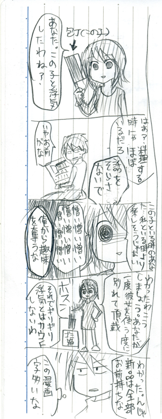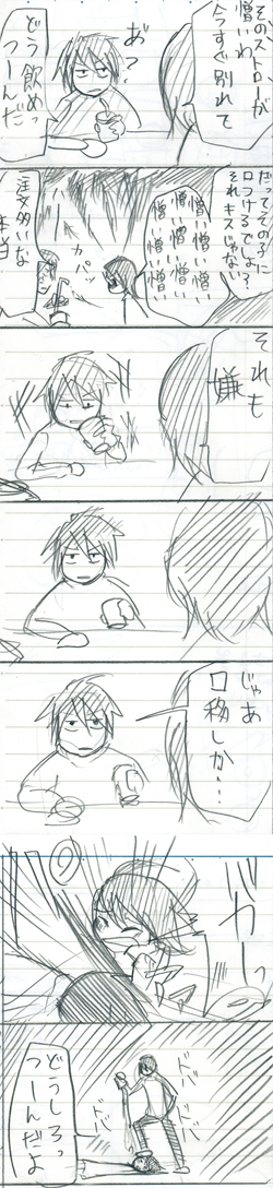 こんだけ描いてる描いてる言っておきながら進んでない理由を考えて書いてみた。 描けないコマが出現→「あー描けないー」→そのままボーっとしてる(もしくは逃避)→次に行く ・・・なんというか。文章に書き起こすともの凄い単純な上にあほらしい。 とりあえずぴくしぶを一旦お気に入りからはずそうと思います。主にあそこで時間つぶす事が多いです。私の意志は弱い。 四月からはオリジナルの短編漫画を描きたいと思ってます なんかバリバリある漫画から影響受けました感がありすぎたので投稿リストからはずしたやつです。 PR